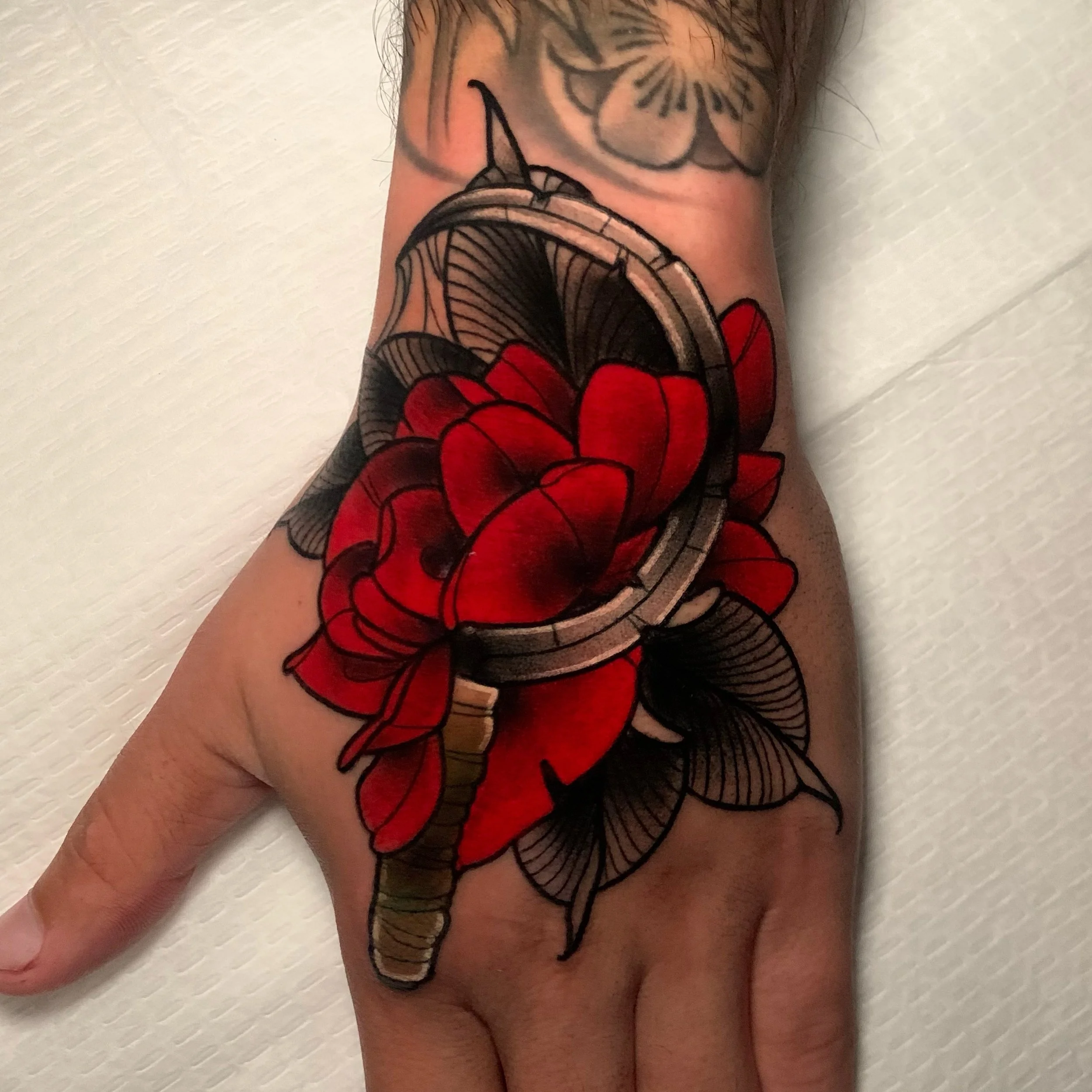A neo-traditional style tattoo artist whose work bursts with rich colors and intricate, dimensional designs. She specializes in larger scale full color and black and gray pieces.
